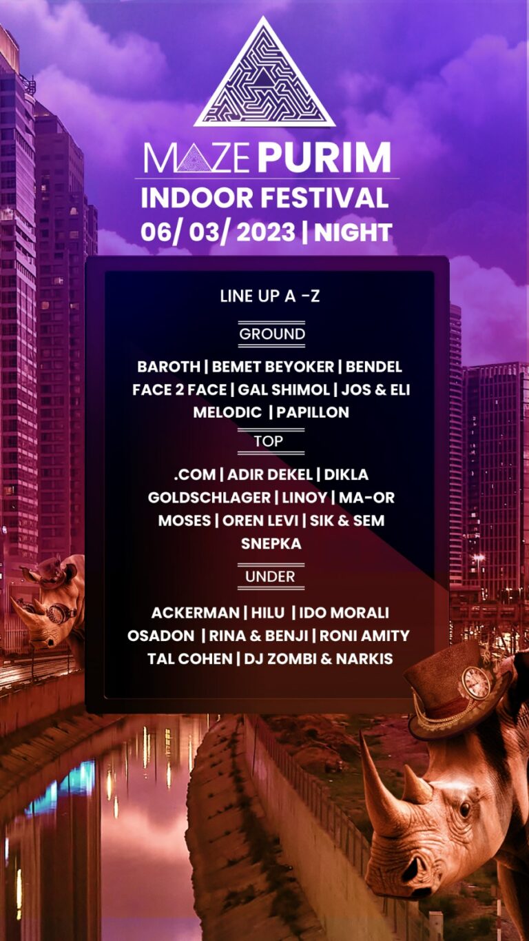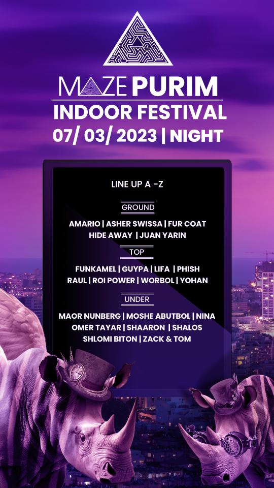 As the sun sets, we’ll be returning to MAZE for an unforgettable after-Purim rave that will keep you partying nonstop for 36 hours straight! With two venues, three stages, and one crazy Purim, this is an experience you simply can’t miss.